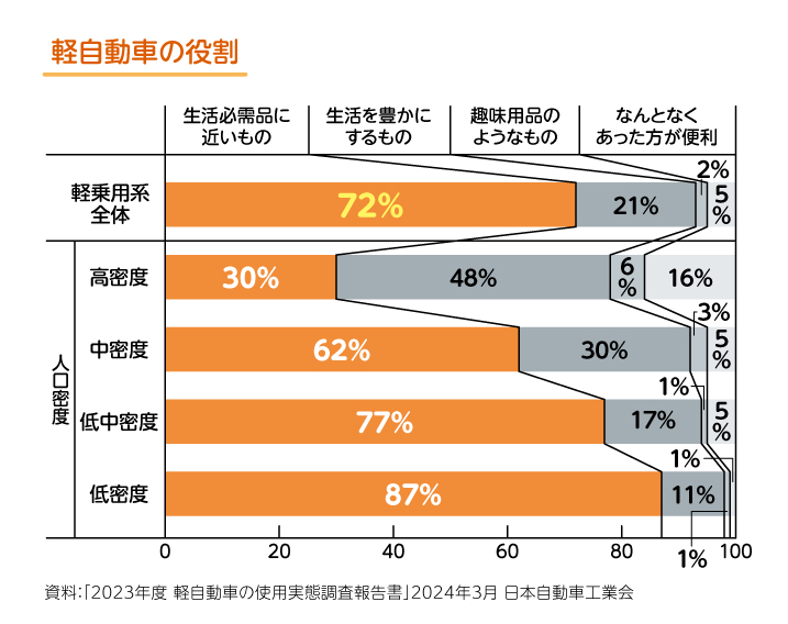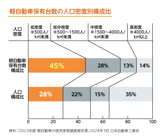 軽自動車の普及率は公共交通機関が利用しにくい地域ほど高い
