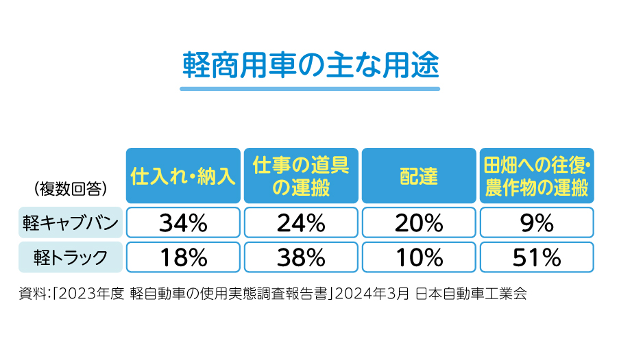 軽自動車は被災された方々の移動手段として利用される他、軽トラックなどの軽商用車は災害廃棄物の撤去や移動販売車などの活用により、商売を営む人々の生活再建への貢献や、災害によって買い物が困難になった人々への支援など、多方面で役立てられています。